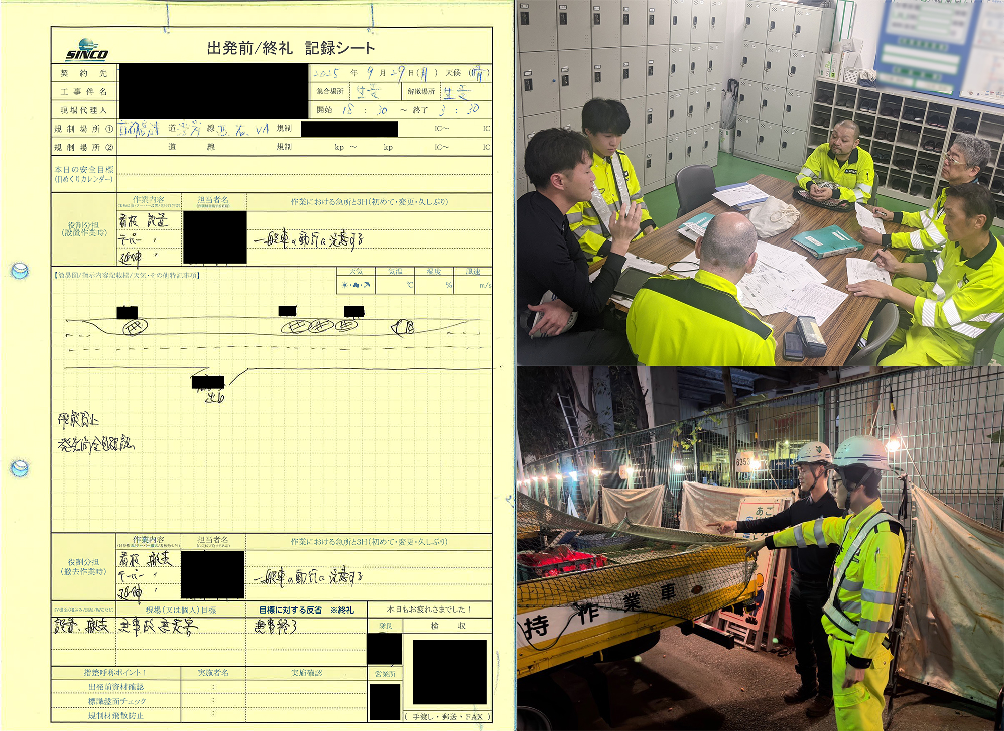 ・入場台数と各施工班の施工位置について共有があった。